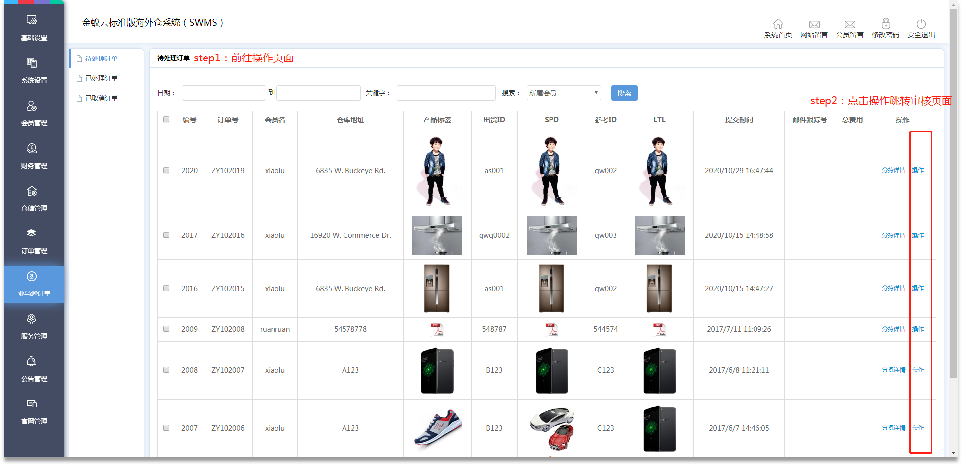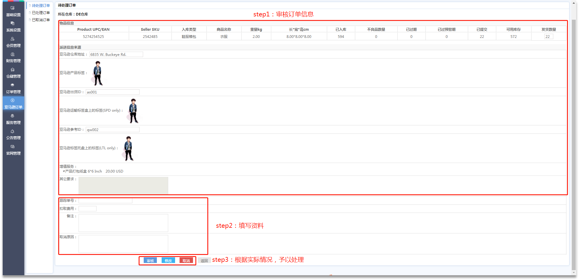 ·會(huì)員提交亞馬遜訂單后,管理員可在【亞馬遜訂單】-【待處理訂單】進(jìn)行審核,審核通過(guò)訂單轉(zhuǎn)入【已處理訂單】,審核不通過(guò)則轉(zhuǎn)入【已取消訂單】。