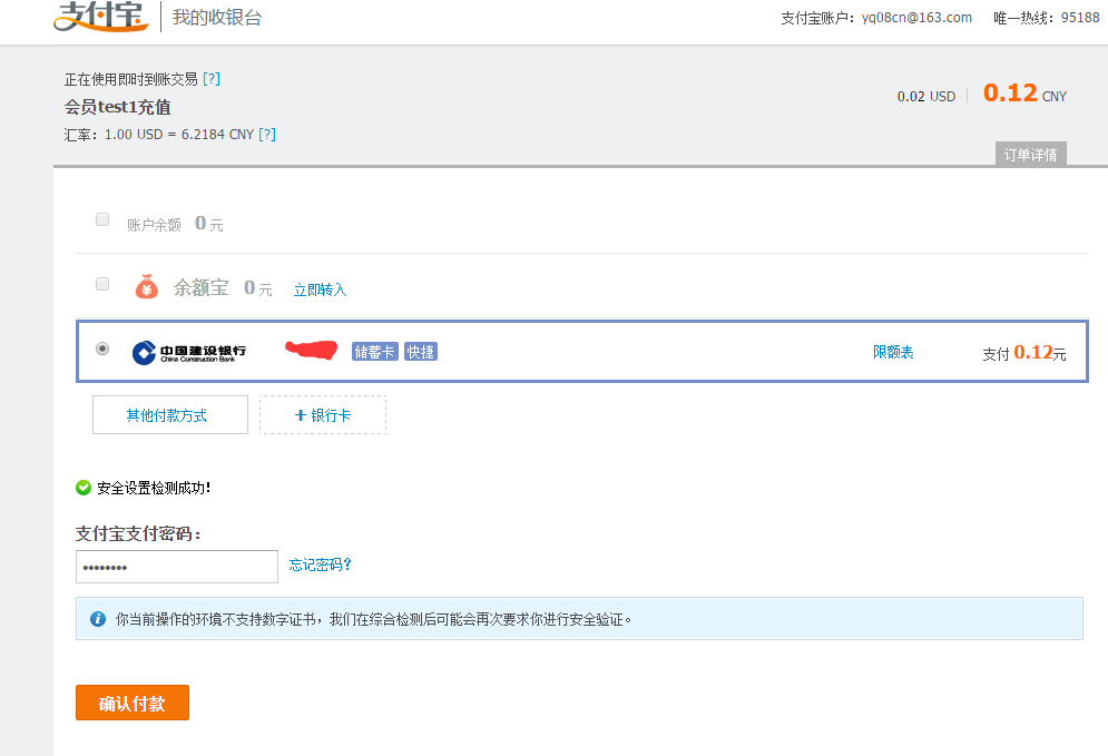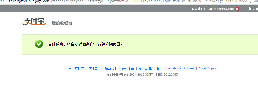 海外支付寶集成到網(wǎng)站在線支付的功能開發(fā)完畢!
