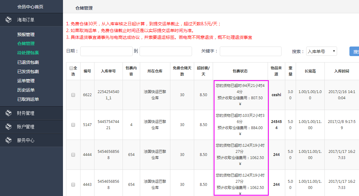 針對(duì)帶有簡易倉儲(chǔ)功能的海淘,一般有倉儲(chǔ)天數(shù)限制,可針對(duì)每個(gè)倉庫設(shè)置多少天免費(fèi),超出多少元/天,按超出的天數(shù)設(shè)置費(fèi)用;