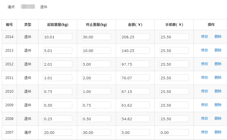 退貨、清點(diǎn):對(duì)不同重量的貨物設(shè)置不同價(jià)格