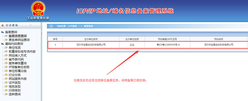 3、在打開的結(jié)果頁面,如果有看到網(wǎng)站的備案信息,就說明備案還有效;如果沒有查詢到任何信息,說明備案已被注銷。
