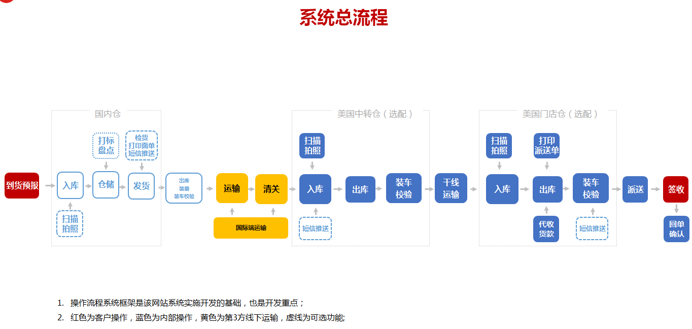 我們結(jié)合多年的跨境類物流倉(cāng)儲(chǔ)企業(yè)的需求,以貿(mào)易額最大的美國(guó)為例,提供了一套中美跨境物流倉(cāng)儲(chǔ)的系統(tǒng)解決方案。