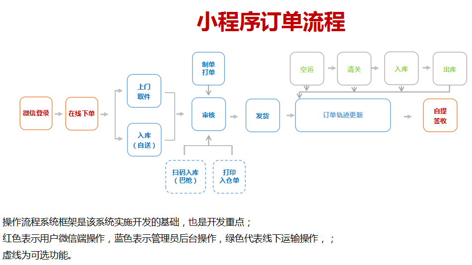 主要功能:A.客戶端:客戶通過微信小程序快速下單、查單和追蹤訂單。
